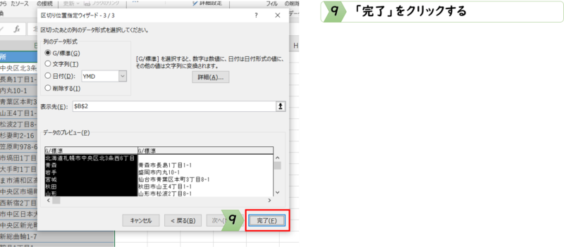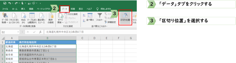 この記事では、「区切り位置」機能を使って都道府県や市区町村で住所を分割する方法を解説しました。
