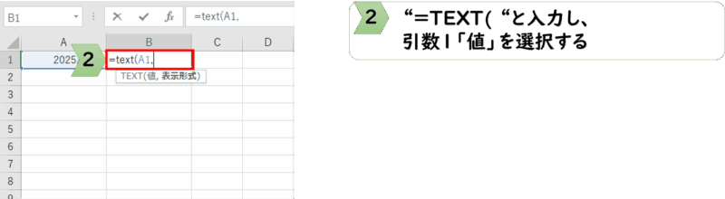 TEXT関数は、たった二つの引数で構成されており、非常にシンプルです。