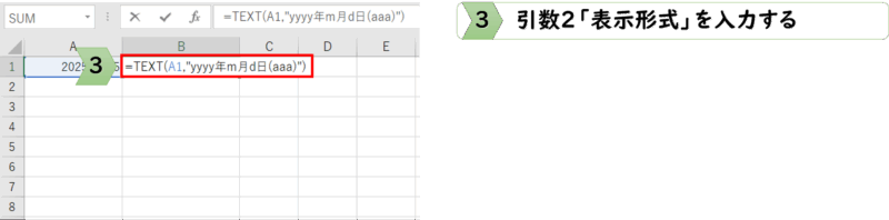 - 引数2「表示形式」を二重引用符で囲んで入力します