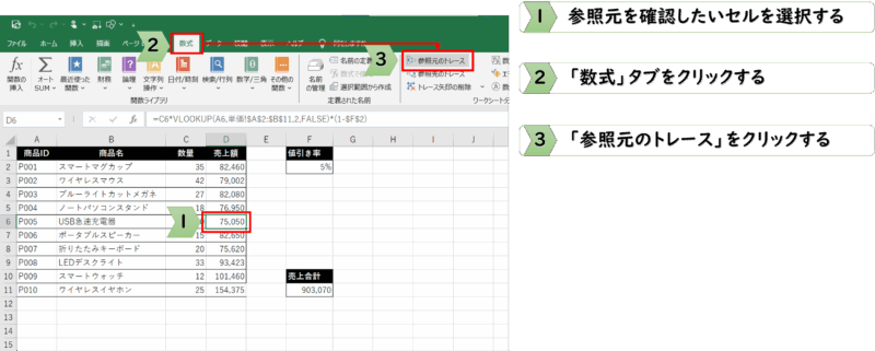 それでは、実際に「参照元のトレース」機能を使う手順を順番に見ていきましょう。